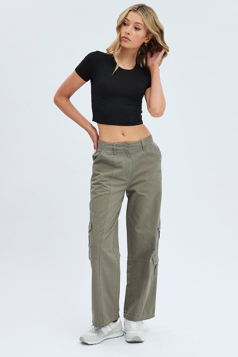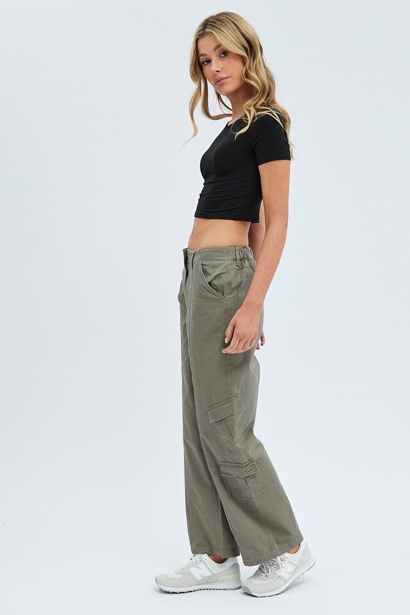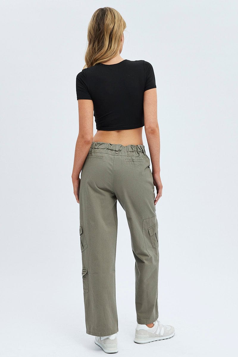 Grey Cargo Pants Low Rise