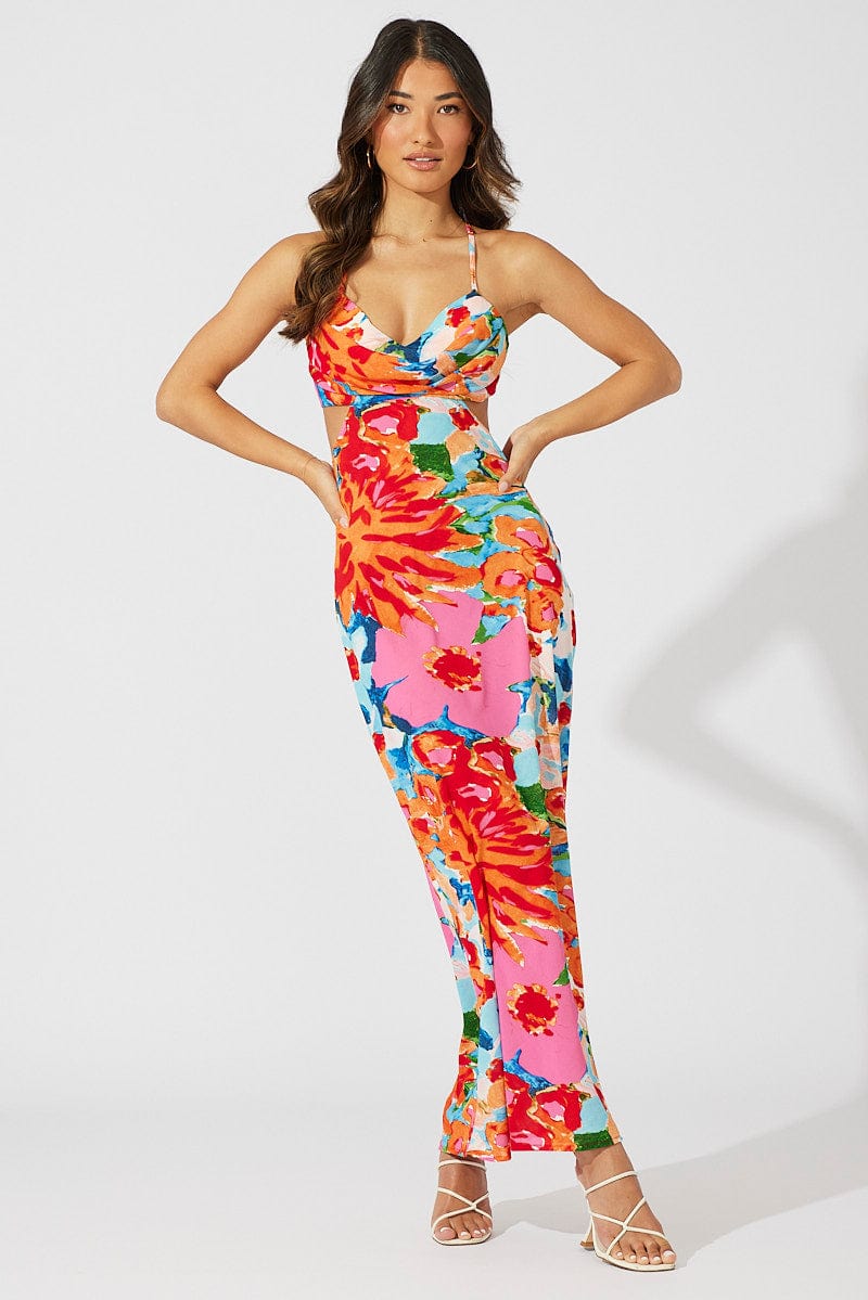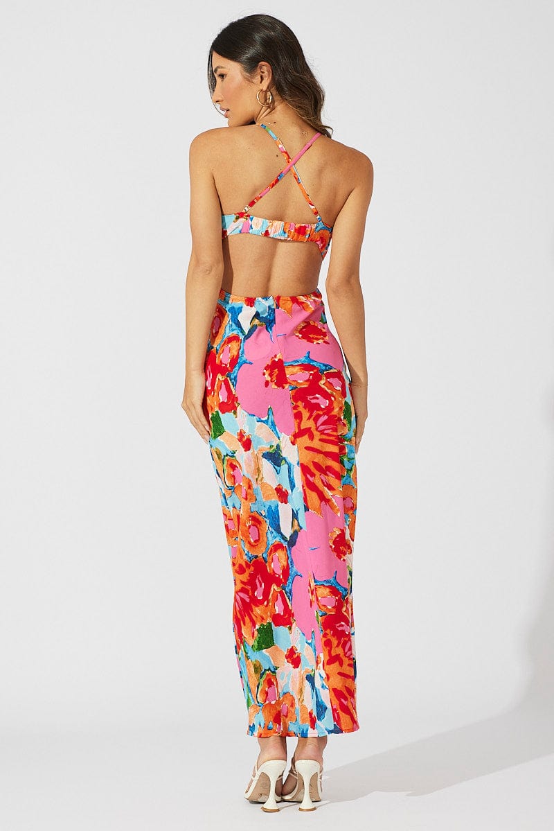 Multi Abstract Maxi Dress Abstract Floral Strappy Cut Out