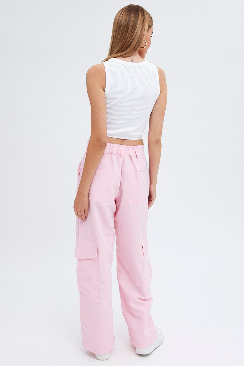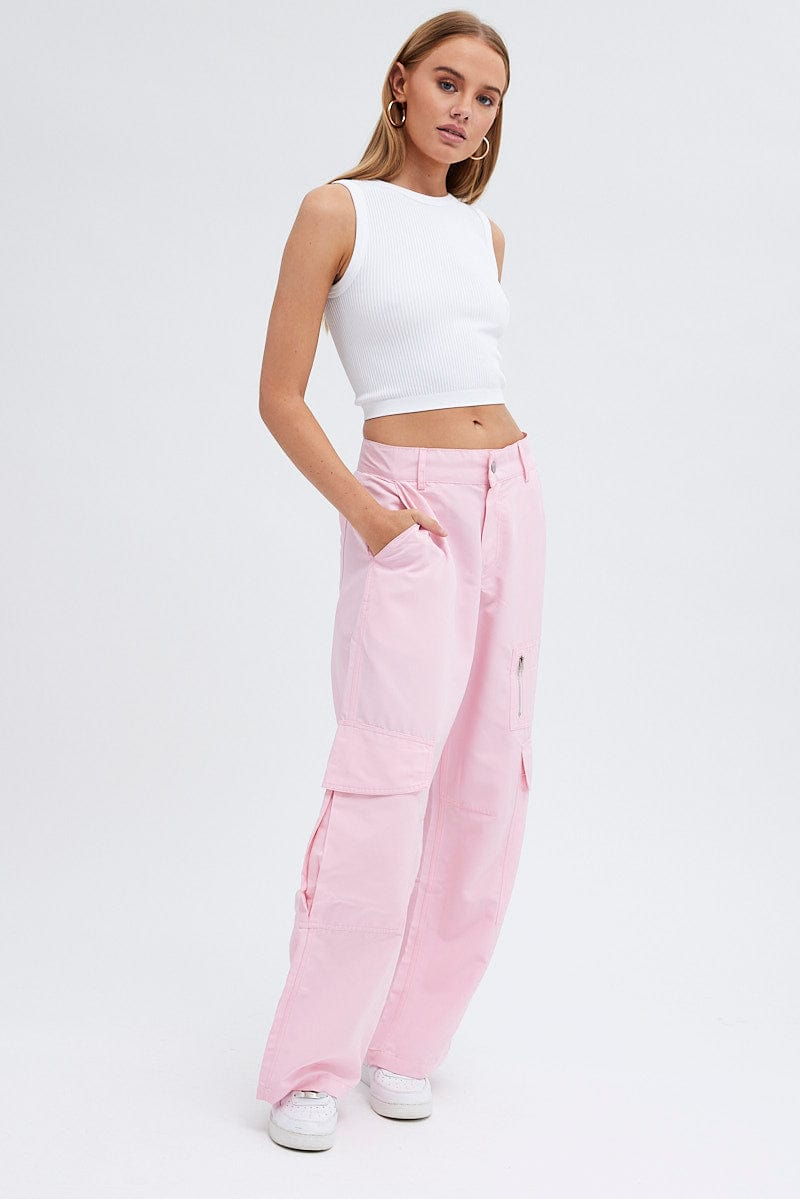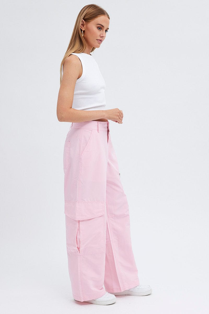 Pink Cargo Pants Mid-Rise Wide Leg Parachute